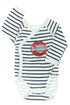 Pans croisés fermés par pressions, pressions à l'entrejambe, sérigraphie.