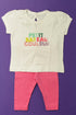 Tee-shirt manches courtes, pressions dans le cou, sérigraphie, legging, taille élastique.