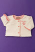 Doublé, fermé par pressions, finitions picot, attention c'est une taille prématurée.