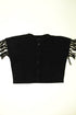 Gilet sans manches, emmanchures à franges, étoiles effrangées.