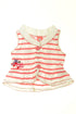 Sans manches, fermé par pressions masquées par des boutons décoratifs, broderie, breloques, dos crocheté.