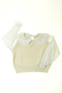 Boutonné dans le cou, col claudine en broderie anglaise, élastique aux poignets, taille resserrée, côtes plates.