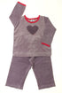 Haut bi-matière velours et éponge bouclette, sérigraphie, pantalon en éponge, taille élastique.