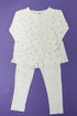 Haut fermé par pressions au col, fentes sur les côtés, bas, taille élastique.