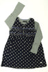 2 robes superposées, une unie à manches longues retroussables, une à pois, sans manches, plastron boutonné à plis plats.