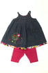 Robe, fines bretelles, entièrement fermée par pressions dans le dos, broderie, legging court, taille élastique.