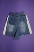 Jupe en jean, coupe asymétrique, taille élastique, fermeture éclair sur le côté avec crochet, 1 poche plaquée devant, sérigraphie effet vieilli, un charmant côté vintage!