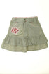 Taille ajustable, fermeture éclair et boutons, 2 poches, volant, écussons brodés.