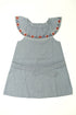 Encolure élastique, col brodé, ceinture ruban, coupe évasée.