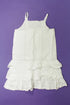 Bretelles réglables, fermeture éclair sur le côté, plis plats devant, volants.