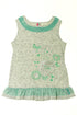 Sans manches, col orné de tulle, sérigraphie, volant en tulle.