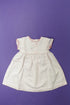 Entièrement boutonnée dans le dos, manches courtes, broderie, liseré.