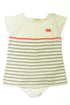 Robe manches courtes, boutonnée à l'épaule, culotte, taille élastique, froufrous aux fesses.