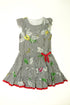 Doublée, fermeture éclair invisible dans le dos, volantée aux épaules, strass, sérigraphie, nœud et ruban décoratifs.