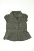 Col plat, boutonnée devant, broderie, manches élastiques.