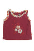 Boutonné dans le dos, col et emmanchures gansés, sérigraphie, motifs appliqués.