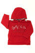 Col fermé par pressions, capuche doublée, poignets et taille resserrés, poche kangourou, broderie, sérigraphie.