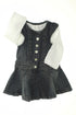 Robe en jean, sans manches, fermée par pressions devant, boutons décoratifs, plis plats, effet vieilli d'origine, tee-shirt manches longues, entièrement fermé par pressions dans le dos.
