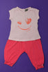 Sarouhel souple, taille élastique, chevilles resserrées, tee-shirt manches courtes, entièrement fermé par pressions dans le dos, sérigraphie, à signaler que le sarouhel est de marque Orchestra.