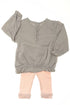 Tunique à pois, poignets et taille élastiques, legging ajouré, taille élastique, liseré aux chevilles.