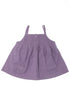 Fines bretelles, boutons et plis plats au plastron, 2 poches à rabat, finement plissée.