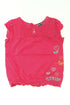 Boutonné dans le cou, manches et taille élastiques, sérigraphie, plastron plissé, boutons décoratifs.