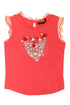 Boutonné dans le cou, finitions en mousseline, pompons, strass.