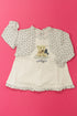 Effet trompe l'œil de superposition d'un boléro et d'un tee-shirt, élastiques aux poignets, sérigraphie.