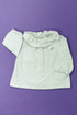 Col claudine, entièrement fermé par pressions dans le dos, élastiques aux poignets.