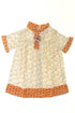 Col plat, boutonnée dans le dos, revers aux manches, girouette appliquée.