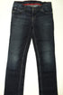 Taille ajustable, fermeture éclair et bouton, 5 poches, effet vieilli.