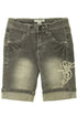 Taille réglable, fermeture éclair et bouton, 4 poches rivetées, revers aux cuisses, sérigraphie, effet vieilli d'origine.