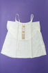 Fines bretelles, volantée, broderie, élastique dans le dos.