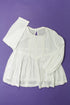 Boutonnée dans le cou, élastiques aux poignets, plis plats et rubans crochetés au plastron, légère.
