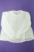 Boutonnée dans le cou, manches longues, élastiques aux poignets, plis plats au plastron, bandes crochetées, très légère.