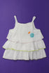 Fines bretelles, entièrement fermée par pressions dans le dos, volants, broderie.