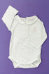 Col claudine, pressions dans le dos et à l'entrejambe, sérigraphie pailletée.