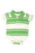 Col plat, manches resserrées, cuisses gansées, pressions à l'entrejambe.