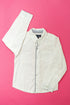 Col plat, poche poitrine, poignets boutonnés, boutonnière gansée.