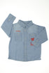 Col plat, poignets boutonnés, poche poitrine, broderie, sérigraphie.