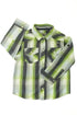 Col plat, 2 poches poitrine, fermée par pressions, broderie et sérigraphie, manches retroussables.