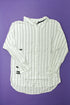 Col plat, manches retroussables, sérigraphie, fentes sur les côtés.