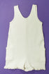 Sans manches, 2 poches, volantées aux cuisses, nid d'abeille.