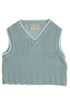Débardeur, col en V, resserré à la taille par larges côtes plates, très chic!