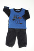 Jean doublé, taille élastique, 2 poches, tee-shirt manches longues, doublé, pressions à l'épaule, sérigraphie.