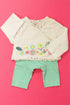 Legging court, taille élastique, cache-cœur, pans croisés fermés par pressions, sérigraphie.