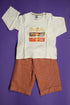 Pantacourt en lainage, doublé, fermeture éclair invisible sur le côté, bouton, 2 poches plaquées, revers, tee-shirt boutonné à l'épaule, sérigraphie.