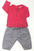 Pantalon, doublé, taille et chevilles élastiques, 2 poches, tee-shirt manches longues, col claudine, boutonné dans le dos.