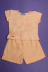 Ensemble brodé, tee-shirt boutonné à l'épaule, finitions surpiquées, short en toile, taille élastique, rabat avec scratch.