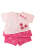 Tee-shirt manches courtes, boutonné dans le dos, broderie, boutons décoratifs, short, taille élastique.